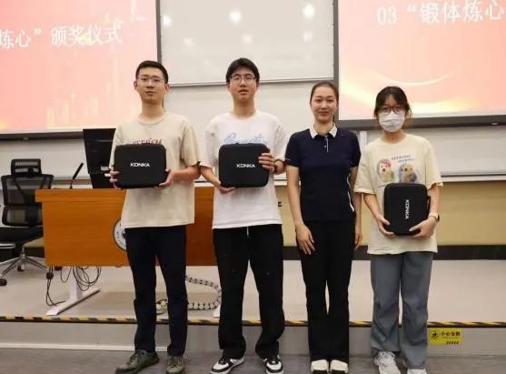 最后,袁婷书记做总结,网赌平台 以体育社团为基石,各社团错位发展,篮球主团队协作,足球主竞技拼搏,乒乓球主灵活应变,羽毛球主敏捷反应,学生在多元的体育运动中学会了如何面对挑战、如何坚持不懈、如何团结协作,网赌平台 营造起“热爱运动、健康快乐、自信拼搏”的文化氛围。未来将深化体育与德育、智育等融合,进一步激发学生活力,学会如何在逆境中坚定信念,提高学习生活的积极性和意志力,培育更多全面发展的人才,为国家输送高素质人才。活动现场为“锻体炼心”活动获奖者颁发奖品。
