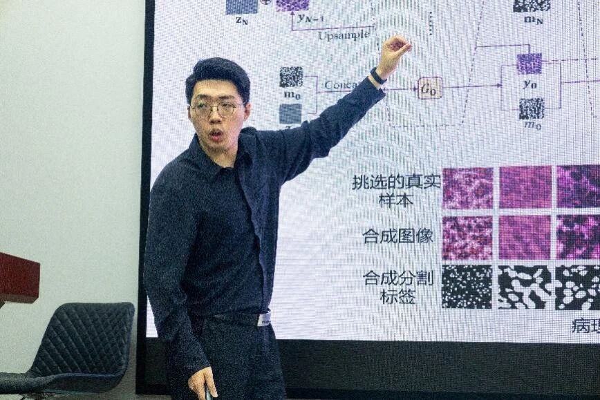 随后,对于数据稀缺性挑战的问题,李灏峰副教授介绍了利用小规模数据对小尺寸模型进行训练,并利用生成的数据集完成更大尺寸模型的训练任务的研究方法,并展示了该技术路线下出色的研究成果。