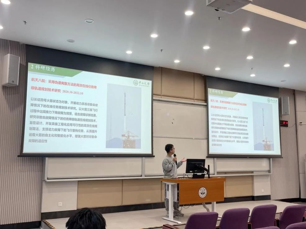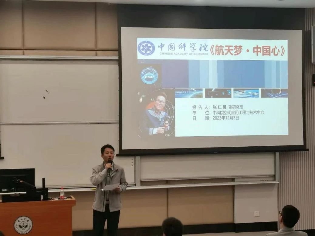 张仁勇副研究员以《航天梦·中国心》为题开展讲座。他以拳拳爱国热情和丰富的案例,向同学们介绍了航天科技的基本知识,包括轨道动力学在地域空间任务中的应用、火星探测器星发射到着陆的整个过程等。他还以自身为例,为同学们讲述了圆梦航天、见识社会真善美的多个故事,让同学们对航天人有了更加深刻的了解和敬佩,同时也激励同学们要牢筑时代根基,勇担青春使命,奋起新征程,建功新时代。
