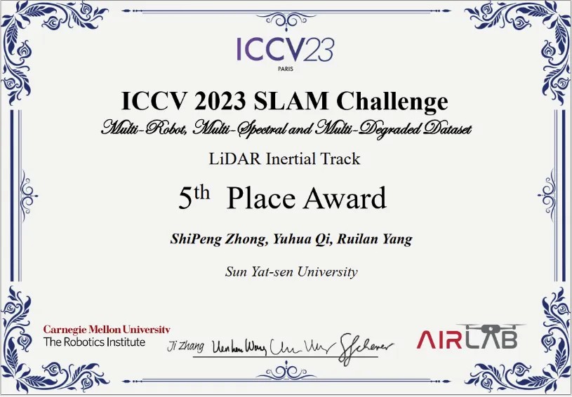 喜报!靠谱的网络赌博平台 师生在“ICCV2023年SLAM挑战赛”中荣获团体奖!