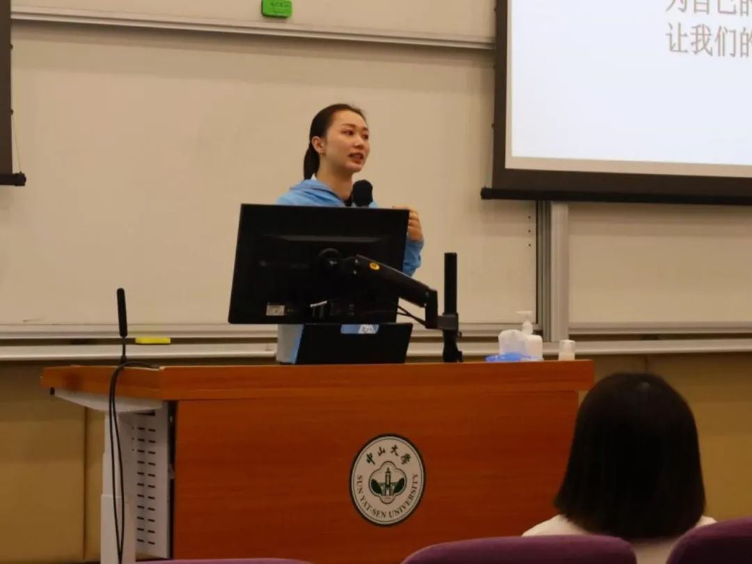 杨伊琳老师,广东省青少年体育联合会副会长、广东省人民对外友好协会理事,更是一位国际级体操运动健将、裁判。她一登台,便用其独特的体操魅力,亲自指导现场同学完成了一系列灵活的体操动作,让同学们体验到了体操训练的智慧,拉近了师生距离。