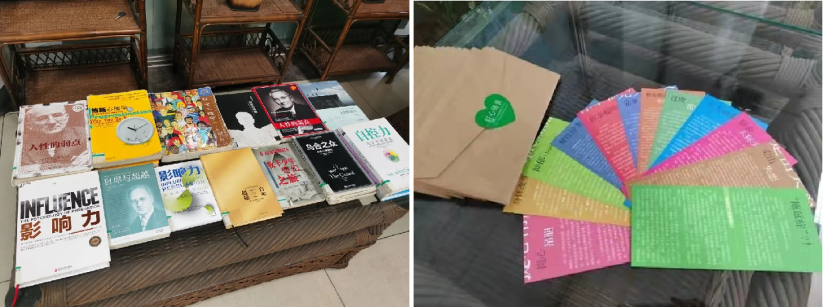 为了进一步加深同学们对心理学的认识,网赌平台 与图书馆联动,贴心地准备了心理咨询中心推荐的和同学们感兴趣的关于心理学方面的书籍,供同学们借阅,并为在座每位同学发放了专属的舒心锦囊,号召在朋辈间进行精准心理建设活动。